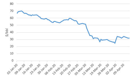 Russia’s budget is based on $42/bbl so it has somewhat less pressure than Saudi Arabia, nevertheless the country did use $7 bn of its forex reserves to support the ruble in March and the currency still fell 30% so a low oil price is not cost-free for the country. Politically, the agreement is positive for President Putin, reflecting an acknowledgement that Russia is important to the health of the global oil sector and providing an opportunity for President Putin to interface more frequently with President Trump after a period of strained relations between the two countries. The falling prices over the past month are also likely to have been a key factor in bringing Russia back to the table.